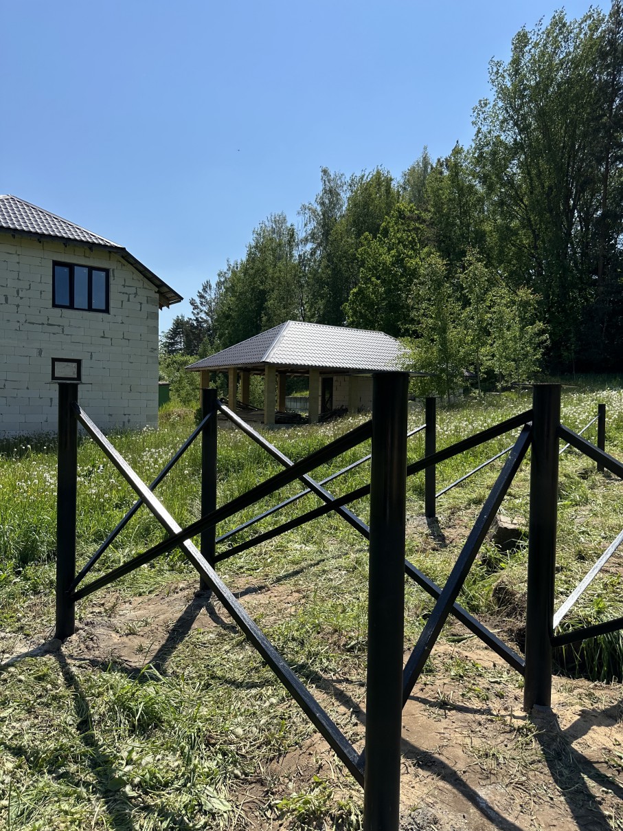Монтаж 30 винтовых свай диаметром 108 мм. Длина свай варьировалась от 2,5 до 3,5 метров для адаптации к рельефу участка и ...
